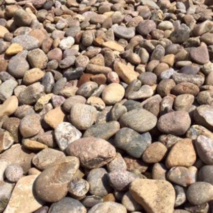 A large rounded multi natural coloured pebble including browns, whites and greys. Ideal for gabion cages, making a feature or drainage.